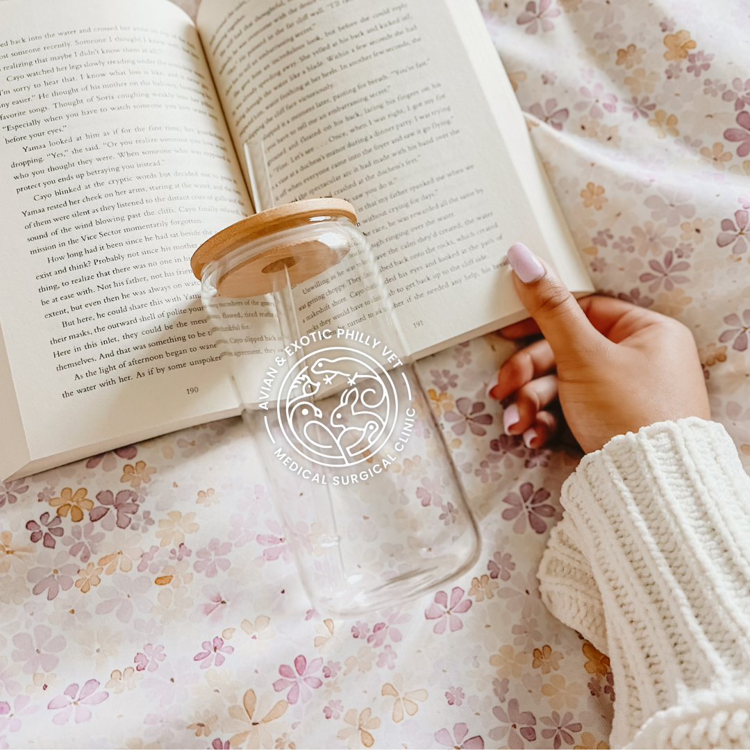 Vidrio esmerilado exótico aviar con tapa de bambú y pajita