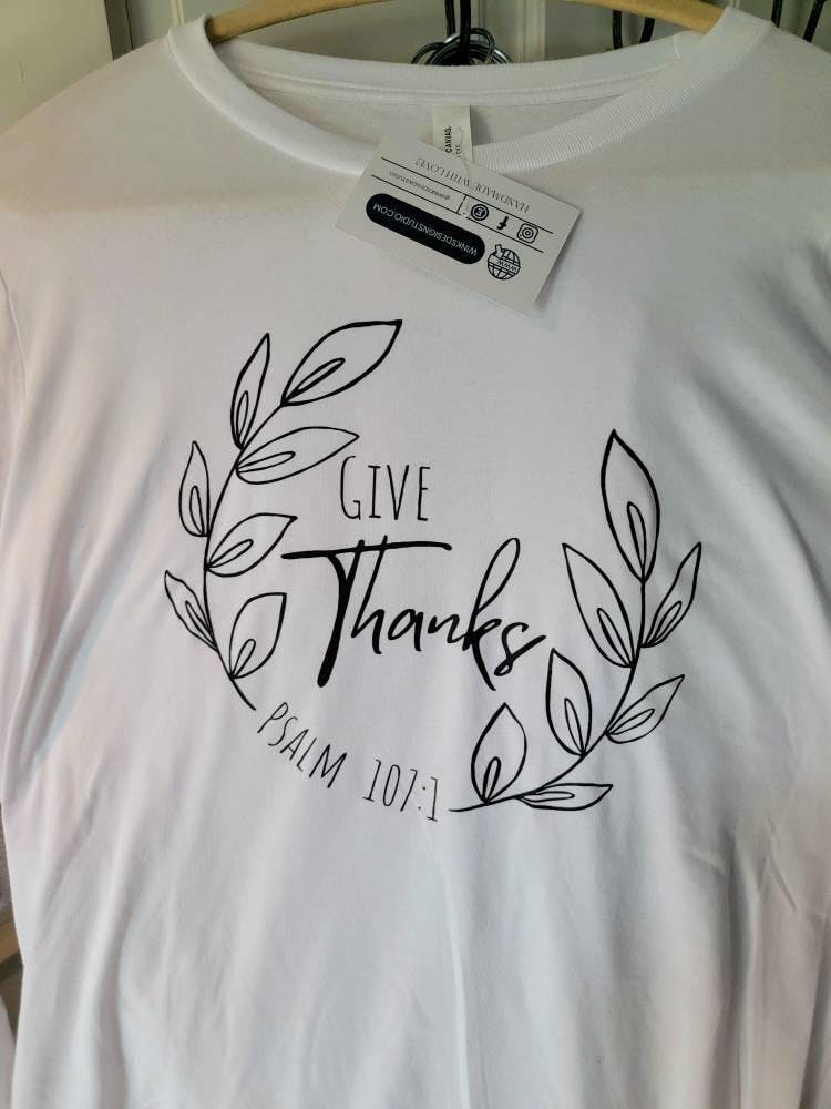 Give Thanks Psalm 107:1 Long Sleeve - Small is backordered and will ship as soon as it is back in stock.